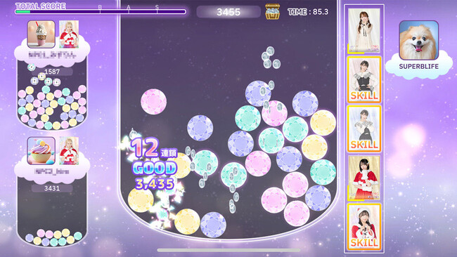 =LOVE、≠ME、≒JOYを起用したファン待望のスマートフォン向け協力パズルゲームです。