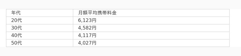 一方で30代〜50代に関してはほぼ同額という結果でした。SNS利用や動画視聴の回数が少なく通信容量もそこまで必要ないため、20代と比較して安くなっているのでしょう。