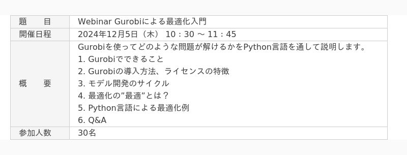 - 2024年12月開催の詳細 ?https://www.gurobi.com/jp_events/event-13047/