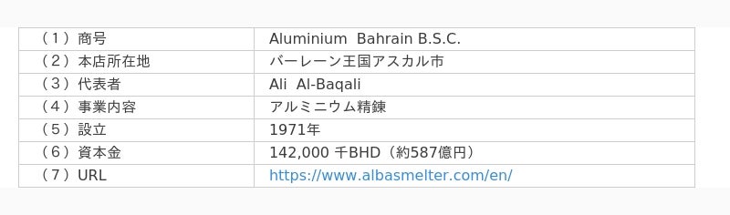 バーレーン王国に本社を置く世界大手のアルミニウム精錬会社であるALBA社と合弁契約の締結