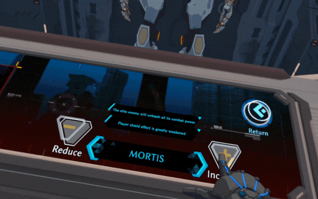 そして、リリース後に多くのプレイヤーから要望をいただいていた難易度設定も追加しました!これからメカフォースを始める人でも安心!VRアクションに慣れるまで難易度を下げてプレイすることもできます。
