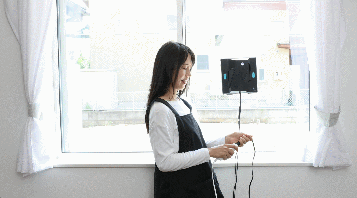 一般的な窓拭きロボットは充電式が多いイメージですが、【MagiMop9】は敢えて有線式を採用しています。これは突然のバッテリー切れでバキューム装置が働かなくなり、落下のリスクがあるから。