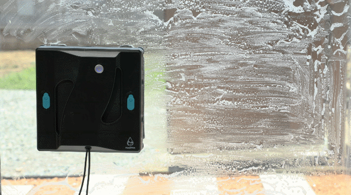 汚れを残さないように往復しながら入念にお掃除を続け、少しずつ向きを変えながら自動で窓全体をキレイにします。