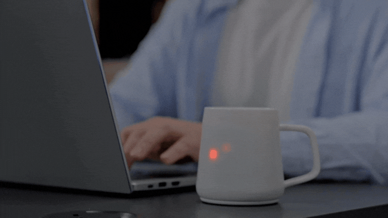 マグカップが、飲み頃温度を光で知らせてくれる。