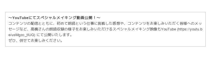 ~メイキング&高橋さんからのメッセージもYouTubeにて同時公開~