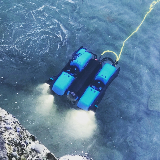 弊社ではアメリカのBlue Robotics社が発売しているBlueROV2をメーンに実験を実施。状況・環境・調査対象等、あらゆる水中探索に対応できるような経験を重ね、水中ドローンの実用を模索しています。