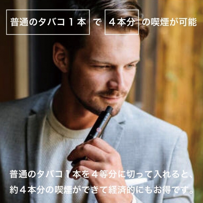 ■普通のタバコ1本で4本分の喫煙が可能。タバコ1本を4等分に切って入れると4本分の喫煙ができ経済的にお得。通常の紙巻きタバコより4倍お財布に優しいヴェポライザー。