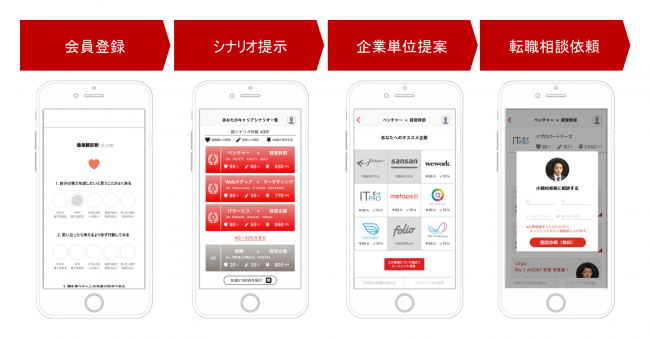 これまで本アプリは、当社で培ってきたノウハウと独自のAIエンジンを融合した「VIEW AI」により、「業界×職種」というキャリアシナリオを提示していましたが、本機能により、具体的な転職先の選択肢を体系的かつ推奨的に確認することができるようになります。