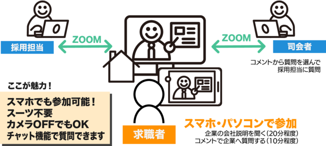 7月22日、23日の2日間にわたって開催される今回は、中途での就職・転職を希望されている方をメインターゲットとしたオンライン合説を開催する運びとなりました。