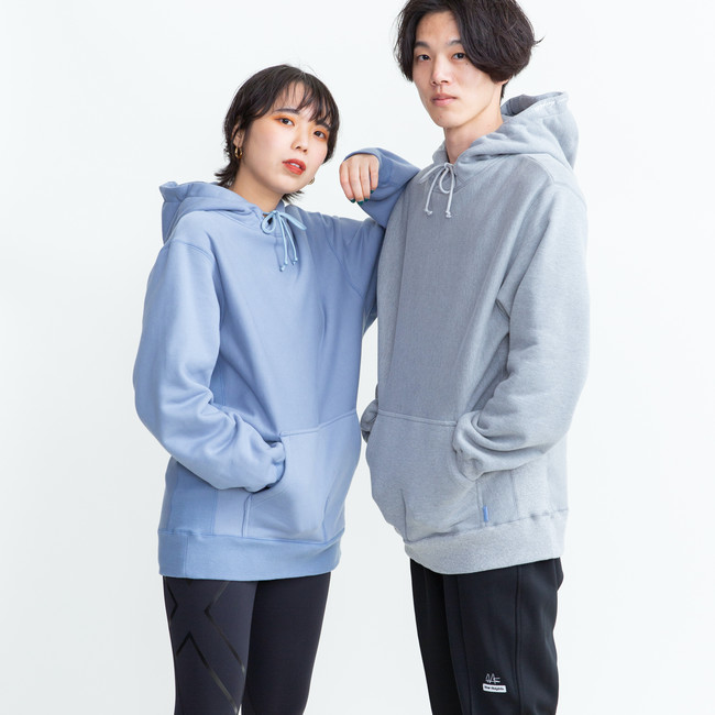 ヘビーウェイトな生地を使用し、日本で作られたフーディ。変形リブが体にフィットする抜群の着心地。