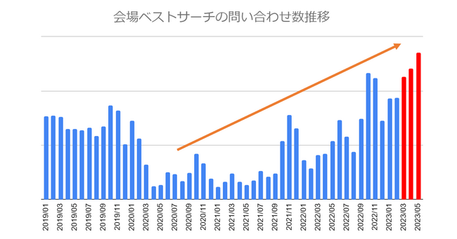 【コロナ前後のパーティー需要調査】アフターコロナで法人・団体の宴会・パーティー件数(問い合わせ)が上昇。コロナ前(2019年)を上回る!