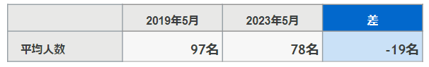 パーティーの問合せ段階での平均人数についてはコロナ前の2019年に比べて1〜2割減。