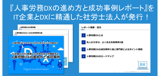 「人事労務DXの進め方と成功事例レポート」をIT企業とDXに精通した社労士法人が発行!