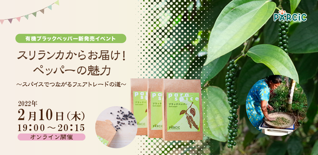国際協力NGOパルシック(所在地:東京都千代田区、代表理事:井上禮子)は、新しくパルシックのフェアトレード商品として加わったスリランカの有機ブラックペッパーの発売を記念して、生産地スリランカの農家さんと繋いで、ブラックペッパーが引き立つレシピなどを紹介するオンラインイベントを2022年2月10日(木)に開催いたします。
