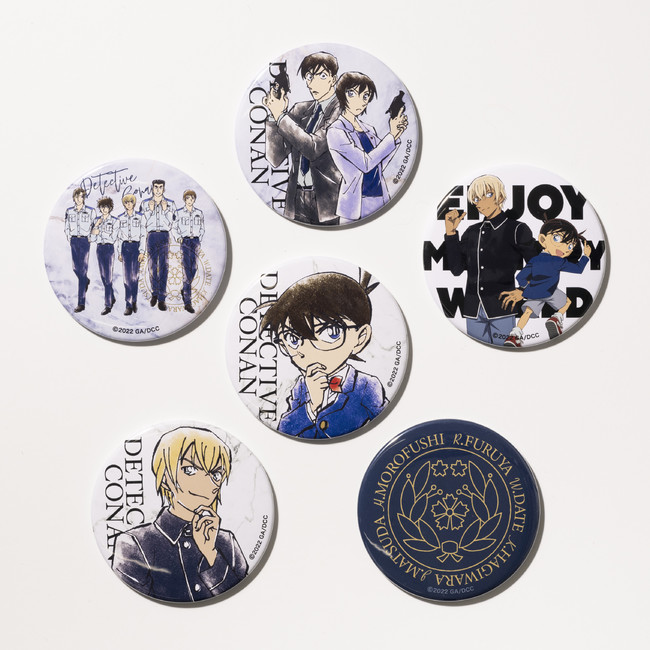 「ライブ・ミュージアム」オリジナルの缶バッジ。キービジュアルや警察学校組のデザインと、ケーキ作りに