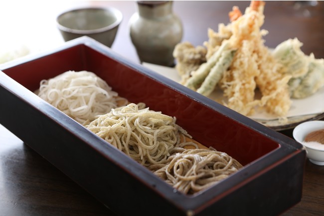 看板メニューの「発芽蕎麦」を含む3種の10割蕎麦食べ比べができるのが魅力。