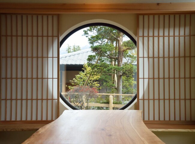 箱根強羅温泉にある箱根連山の絶景が人気の旅館「円かの杜」。全館畳敷き、泉質の異なる2本の源泉によって全20室の露天風呂付き客室と大浴場の館内湯めぐりを愉しめる宿。