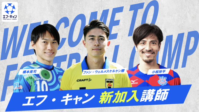 "サッカー脳"に重点をおき、現役Jリーガーやプロサッカー選手たちがマンツーマンで指導を行うエフ・キャンに、2022年10月31日よりファン・ウェルメスケルケン・際 選手(SCカンブーレ所属 オランダ1部リーグ)、橋本晃司 選手(鈴鹿ポイントゲッターズ所属 J F L)、小椋祥平氏(元横浜F・マリノスなど所属)の3名が新たに講師として加わりました。