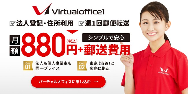 【価格改定】次年度以降も月額880円+郵送費用で利用可能に!バーチャルオフィス1