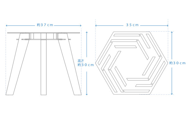 三本の脚と、六角形の天板。そして、自然に抱かれ、雄大な山麓を臨みながら、焚き火と共にあるチルタイムを過ごすテーブルであること。そんなイメージから名付けました。