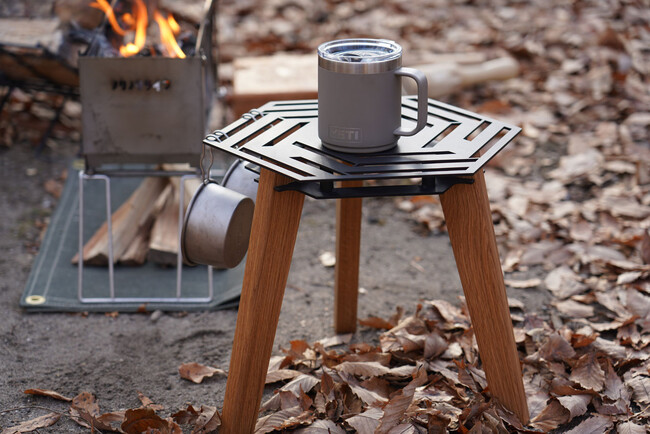天板は厚さ3mmの金属製なので、焚き火調理で高温になったダッチオーブンやスキレットなどを「ちょい置き」したり、そのままミニマムな食卓として利用できます。