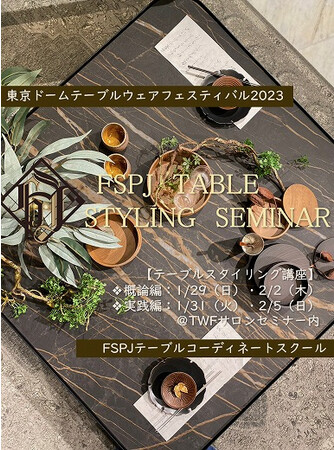 FSPJテーブルコーディネートスクール(食空間プロジェクト株式会社運営 本社:東京都中央区銀座 代表:慈道美奈子 以下「FSPJ」 )では、「テーブルウェアフェスティバル2023~暮らしを彩る器展~」サロンセミナー にて、初心者向けのテーブルスタイリング講座を初開講いたします。