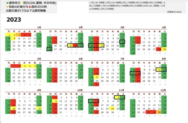 ※大型連休のある月は稼働日数が少ないため隔週週休3日制に変更(1月、5月、12月)