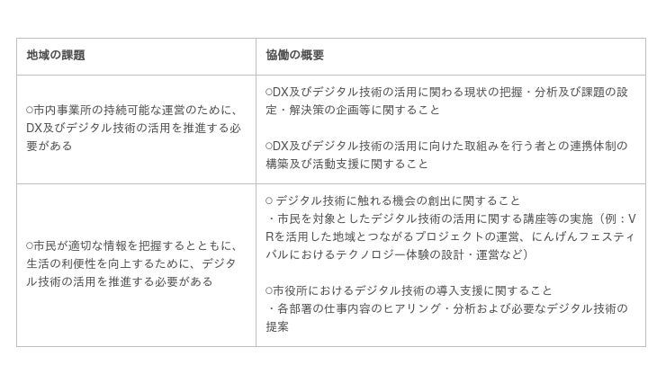 これまでの実践を深めるとともに、人の暮らしを中心とした地域創生の実現に向けてDX、イノベーション、地域共生社会のテーマにおける更なる協働を加速させるべく、3者の連携協定締結にいたりました。