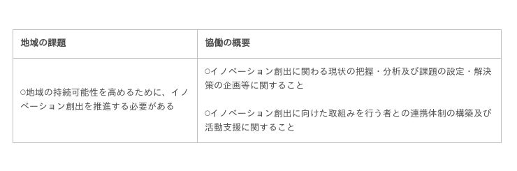 本協定では、大牟田市、大牟田未来共創センター、地域創生Coデザイン研究所が、大牟田市における地域創生の実現を図ることを目的とし、次に掲げる事項について相互に連携及び協力を行います。