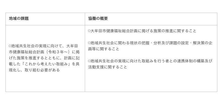 「大牟田市と一般社団法人大牟田未来共創センターとの地域共生社会の実現に向けた連携協定書」(令和3年10月29日締結)より抜粋