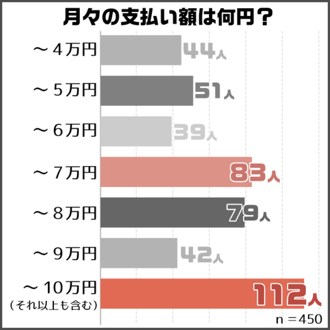 ●月々「〜10万円以下(それ以上も含む)」が最多