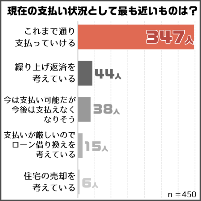 ただ「支払えなくなりそう」「支払いが厳しい」といった選択をした人も一定数いますね。支払えないという状況が一時的なもので、今後状況が良い方向へ変わるのであればまだ良いのですが、状況が悪化し支払いが滞り、住宅売却などの手段しかないことになってしまっては大変です。