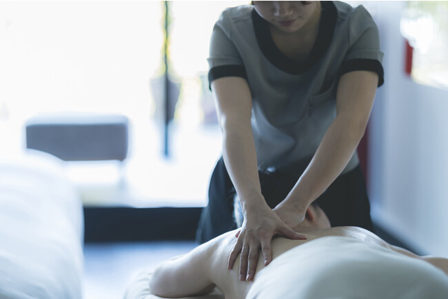 強い力で筋肉の深層をほぐすオイルマッサージ。