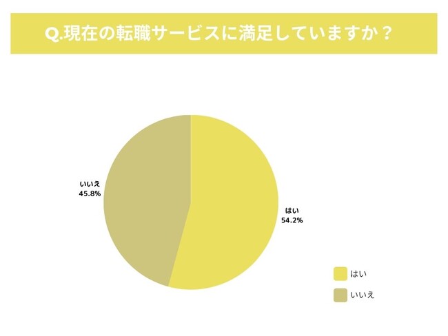 「Q.登録中の求人サービスに満足していますか?」と伺ったところ、約半数の人が満足していないことがわかりました。