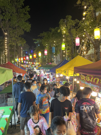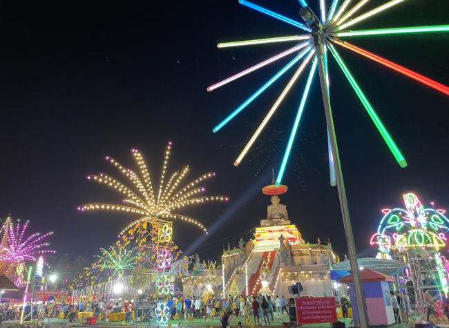 意。タイの寺院のお祭りをイメージした装飾やクラシカルなタイ式屋外シアター、タイの灯籠流し「ローイクラントン」など夜ならではの コンテンツで楽しめます。