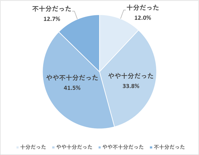 「不十分だった」「やや不十分だった」が「十分だった」「やや十分だった」をそれぞれ上回り、前2者が合計で54.2%に達しています。夏期講習期間の睡眠不足が頻繁に起きるものであることが示唆されます。