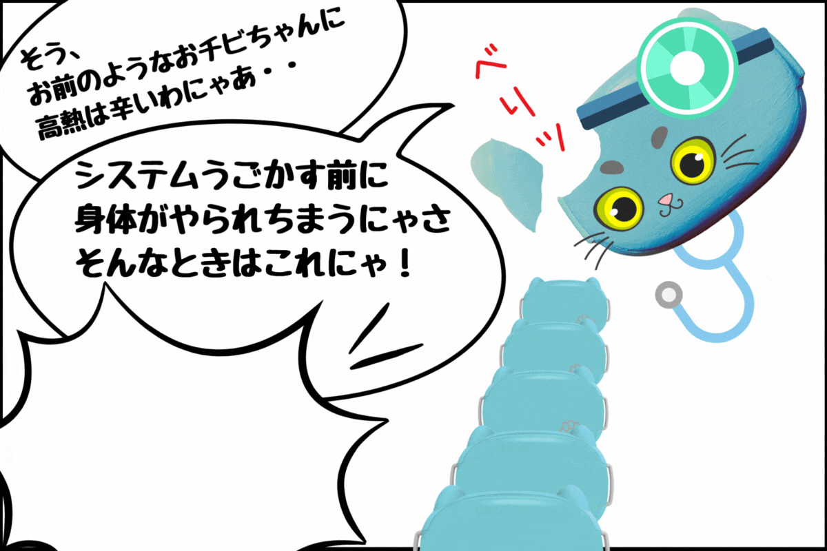 局所冷却が発熱時に有効な理由を猫のTREASURE先生が漫画で解説します