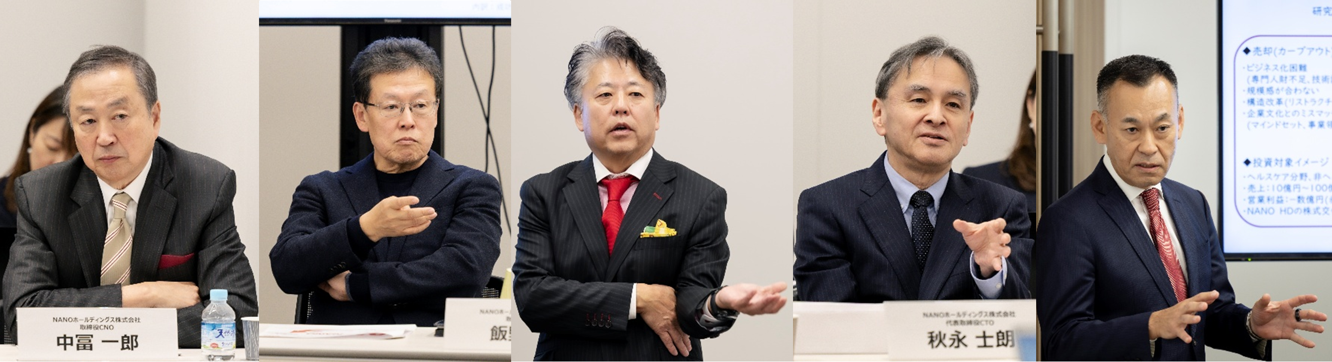 新体制「NANOホールディングス」始動。SBIグループとの提携で開く新市場パネルディスカッション終了後、「成長戦略記者発表会」を開催。