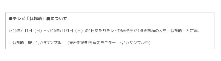 今年5月〜7月の1日あたりテレビ視聴時間が1時間未満の人をテレビ「低視聴」層と定義し、図1と同じようにデータをまとめたものが図2です。