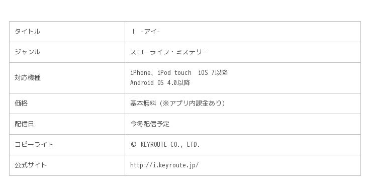 株式会社KEYROUTEによる新作スマートフォン用ゲーム『I -アイ‐』を発表!今冬配信決定!