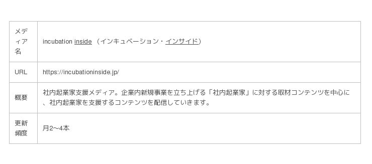 社内起業家のインタビューメディア「incubation inside(インキュベーション・インサイド)」をリリース。
