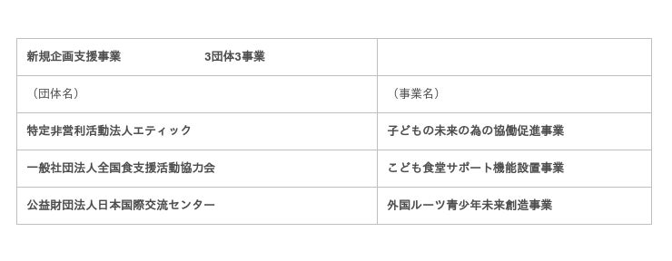 決定した資金分配団体の、事業概要、審査コメント、助成額等については、JANPIAの