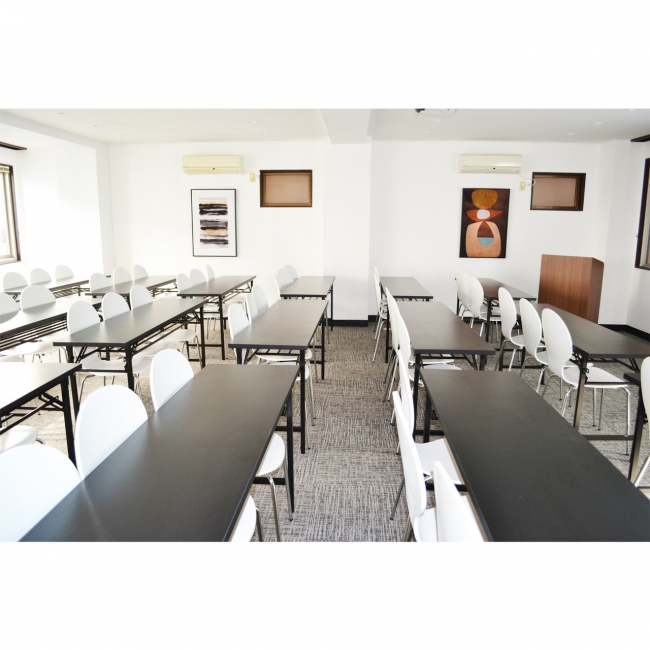 ・備品:電源、高速Wi-fi、ホワイトボード、プロジェクター、マイク、各種接続・充電ケーブル