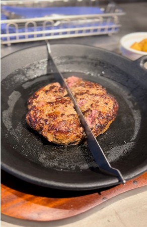 「ハンバーグとハンバーグ」は、COWMAN STEAK CLUBの自社牧場(アメリカ・キャッシュバレー)で育てたブラックアンガス牛の肩ロースを100%使用しております。脂身が少なく、たんぱく質を多く含むことで知られているブラックアンガス牛ですが、その中でも肩ロースを使うことによって、よりヘルシーで食べやすいハンバーグになっております。