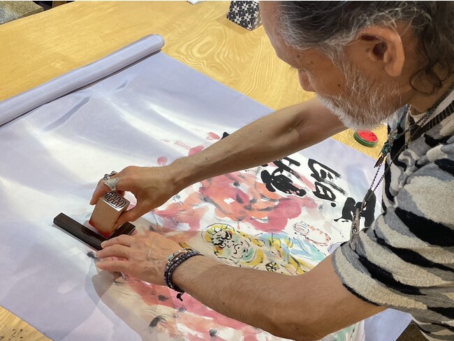 常に新しいことに挑戦し創造の可能性を広げる片岡鶴太郎氏。今まで着物や帯の制作経験はありますが、今回、初挑戦したのが羽織の裏地である「額裏」です。