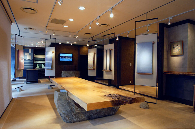 また、世界初・雄だけの純国産蚕品種「プラチナボーイ」の絹糸を使った一本の糸からこだわった生産履歴のわかる“顔の見えるものづくり”や、蚕から世界でひとつの着物を誂えていただく体験型プロジェクト「プラチナボーイ物語」。店内に大島紬の機織を設置し、実際に織り手が反物を織る様子をご覧いただく「銀座生まれの大島紬」や定期的に作り手を招いてのトーク会など、お客様と作り手の懸け橋として、自分の目で見て、耳で聞いて、手で触れて感じたことを、自分の言葉で伝えることを大切にし、着物の裏側にあるストーリーをお届けしています。