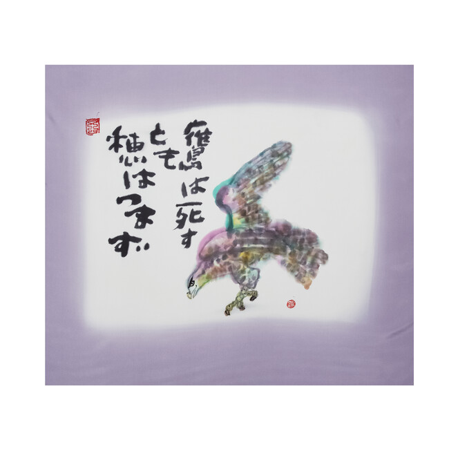 片岡氏は、自然や動物、人物などさまざまなモチーフを墨彩画で、墨のにじみや筆のタッチを駆使し、力強く且つ、繊細に描き出します。また、絵と書の融合によって、作品に物語性や詩的な要素が加わり、語りかけてくるような躍動感で観る者に深い感動を与える独創的な世界観が魅力です。