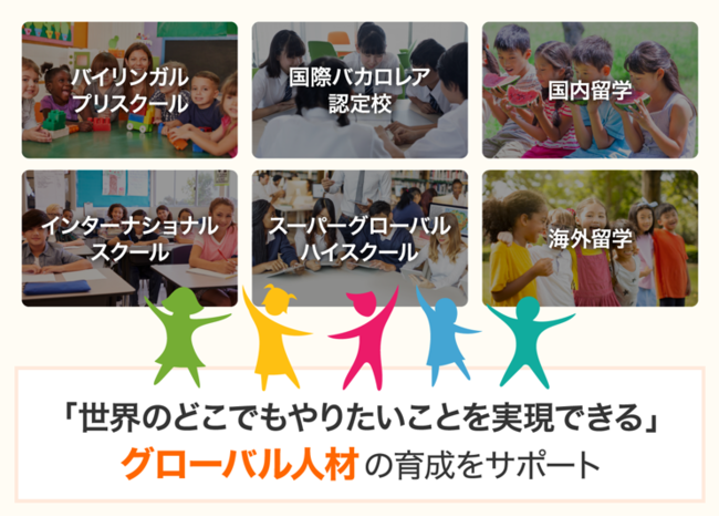 本プラットフォームを通じ、これからの時代を生きる子どもたちに「グローバル教育」という選択肢を提示。子育て世代の保護者の学校探しから情報交換や相談までをワンストップで提供できる場をつくり、日本におけるグローバル人材の育成に貢献したいと考えています。