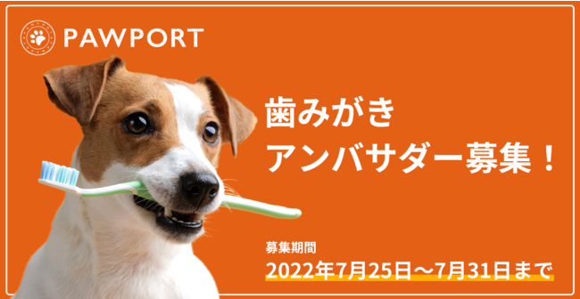 正しいデンタルケアの知識を広め、歯磨きができる犬を増やすことで歯周病で苦しむ犬を減らしていくべく、PAWPORT歯磨きアンバサダーを募集することとなりました。