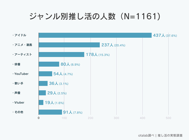 推し活女子1,161名の中で最も多かったジャンルは「アイドル」